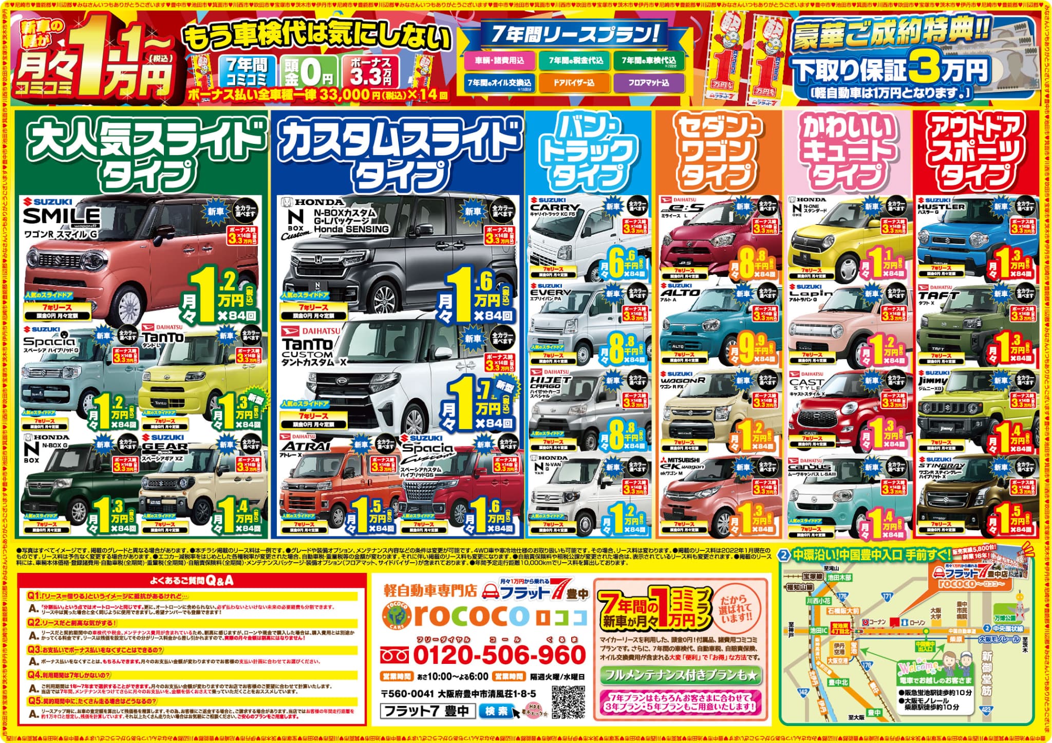 フラット7のことなら、フラット7豊中(軽自動車専門店ロココ)までお気軽にお問合せ下さい。